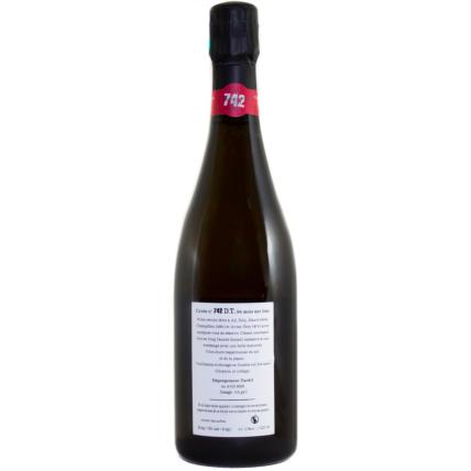 • Cépages : Chardonnay, Pinot Noir, Pinot Meunier, La cuvée 742 est vinifiée sur la base du millésime 2013, en foudre anciens et quelques demi-muids avec des périodes de batonnage. La fermentation malolactique est réalisée, non dosé cette cuvée Dégorgement Tardif  a été élevée durant 94 mois sur lie et sous liège  avant son dégorgement en avril 2023.