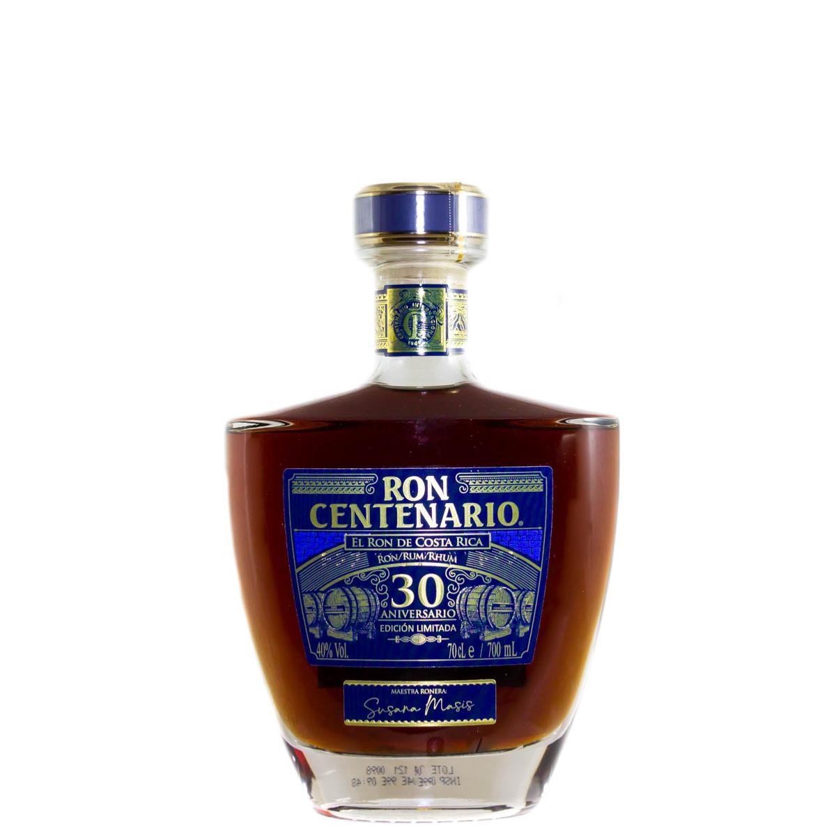 Centenario 30 est un rhum traditionnel hors d’âge produit au Costa Rica. Vieilli selon une méthode solera, les rhums sont âgés en moyenne de 30 ans. Il est embouteillé à 40° dans une belle carafe.